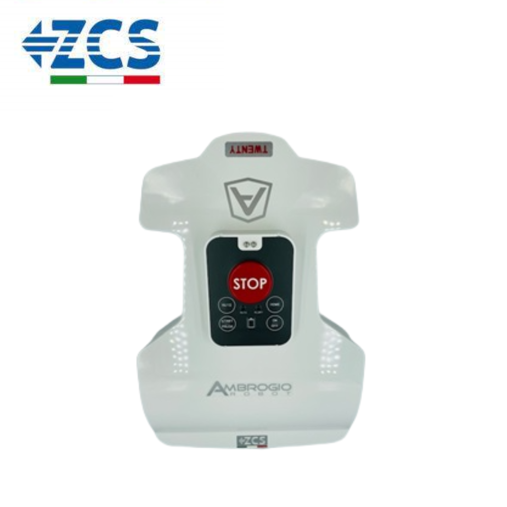 Pokrywa górna robota koszącego Ambrogio jest zespolona z wyświetlaczem diodowym jak i z włącznikiem "STOP" oraz czujnikiem deszczu.