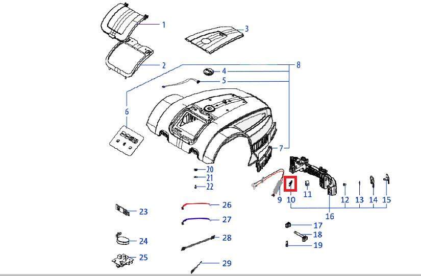Nie znalazłeś interesującej Cię części robota koszącego? Dzięki schematom możesz łatwo zlokalizować potrzebny element i skontaktować się z nami, a my zajmiemy się Twoim zamówieniem! Bez potrzeby serwisowania robota!