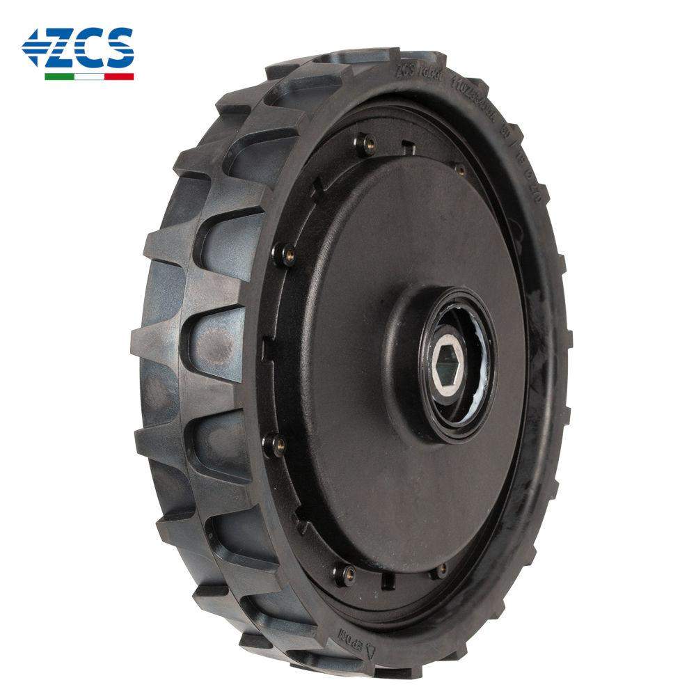 Wymiana kół z twardych plastikowych na gumowe zwiększa przyczepność, poprawiając komfort pracy robotów koszących. Dodatkowo, koła te są cichsze podczas jazdy i skutecznie zapobiegają ślizganiu się na trudnym terenie.