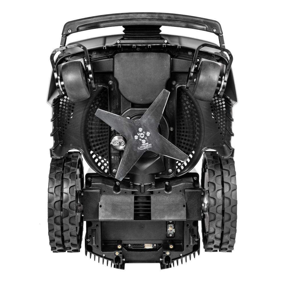 Gumowy bieżnik zapewnia lepszą przyczepność na trawie, a ochrona IPx5 zabezpiecza robota przed wodą, co jest szczególnie przydatne podczas pracy w wilgotnych warunkach.