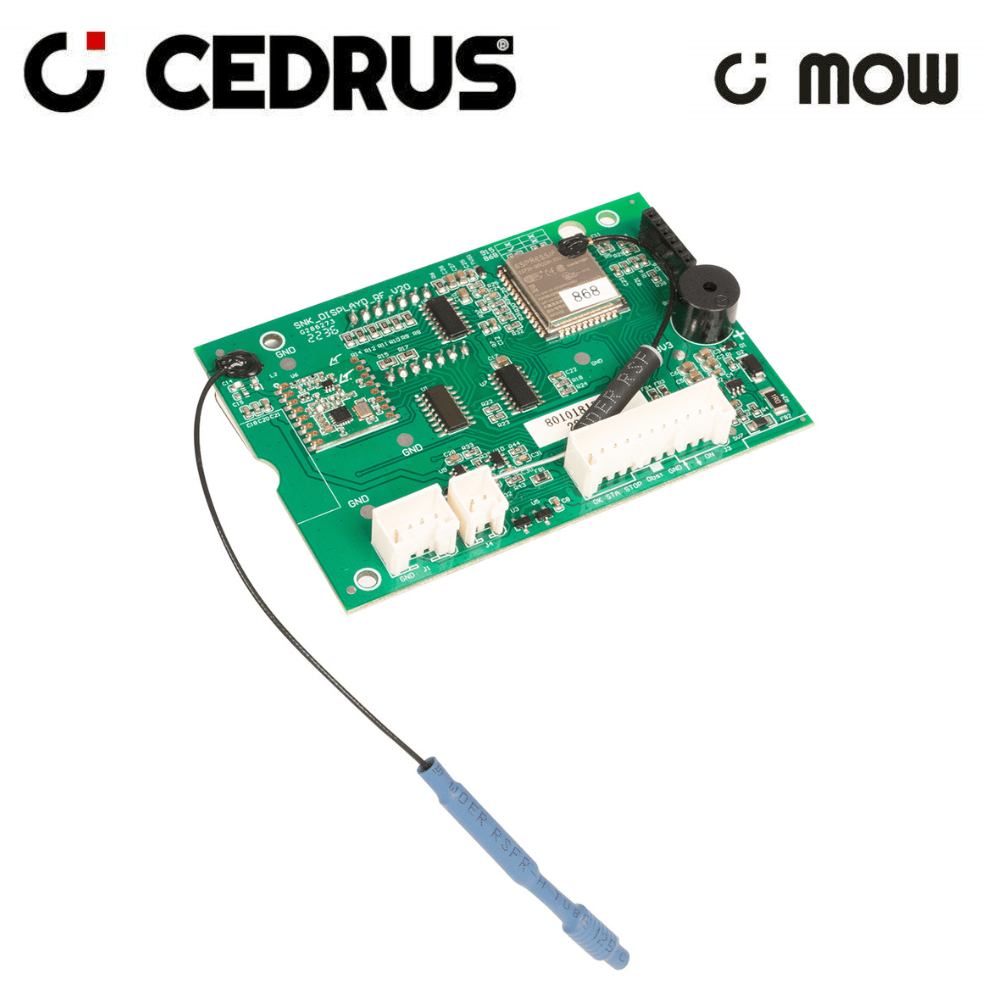 Płyta główna z wyświetlaczem w kosiarce automatycznej Cedrus C-MOW seria L to centralny układ sterowania, który odpowiada za wszystkie funkcje urządzenia. To tak jakby mózg kosiarki. Dzięki niej robot koszący może: