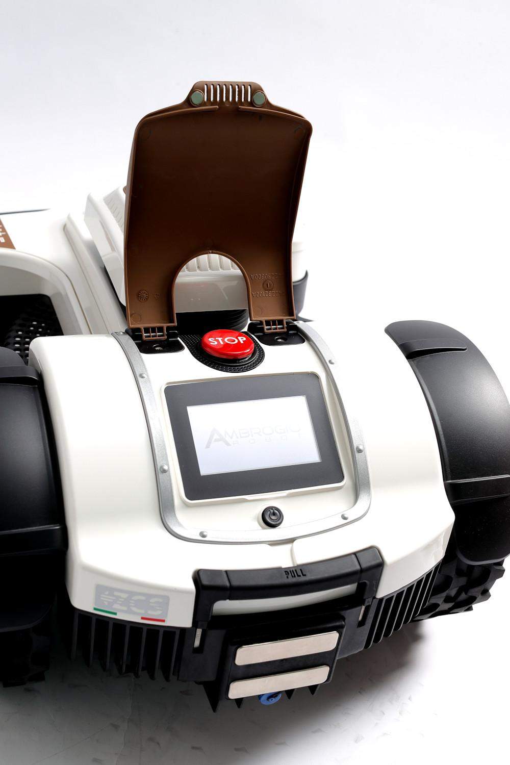 2. Zdalna kontrola i bezpieczeństwo dzięki ZCS Connect: Moduł ZCS Connect umożliwia monitorowanie i zarządzanie robotem przez aplikację Ambrogio Remote. Dzięki technologii Geofence robot jest zabezpieczony przed kradzieżą, a użytkownik może śledzić jego lokalizację oraz reagować na powiadomienia w czasie rzeczywistym. Integracja z Bluetooth i GSM ułatwia komunikację i zwiększa wygodę użytkowania.