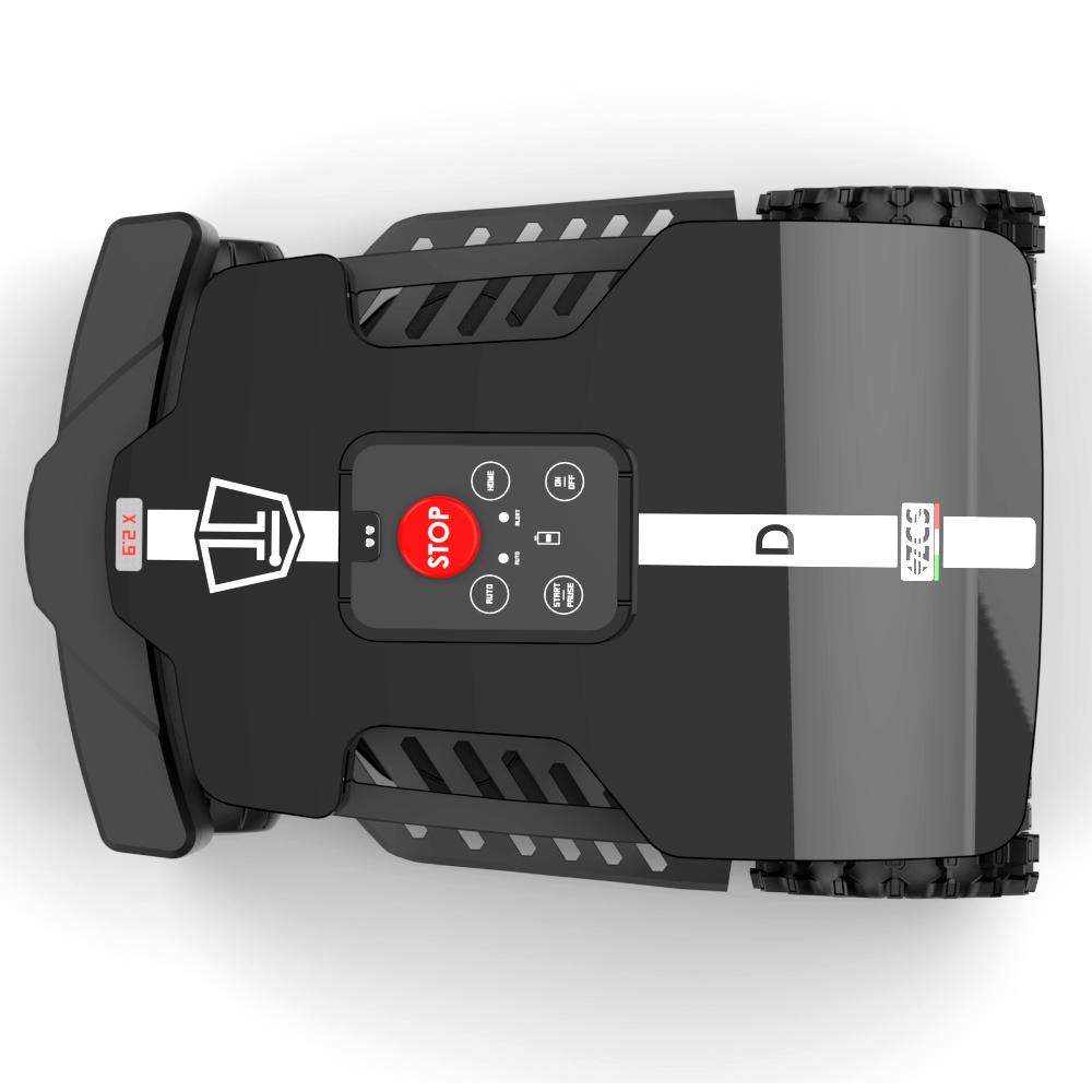 Robot posiada czujnik deszczu, który automatycznie wstrzymuje pracę podczas opadów, a także awaryjny przycisk STOP i zabezpieczenie PIN, co gwarantuje pełne bezpieczeństwo użytkowania. Panel sterujący z diodami LED umożliwia intuicyjne sterowanie, a aplikacja mobilna zapewnia dodatkowe możliwości ustawień.