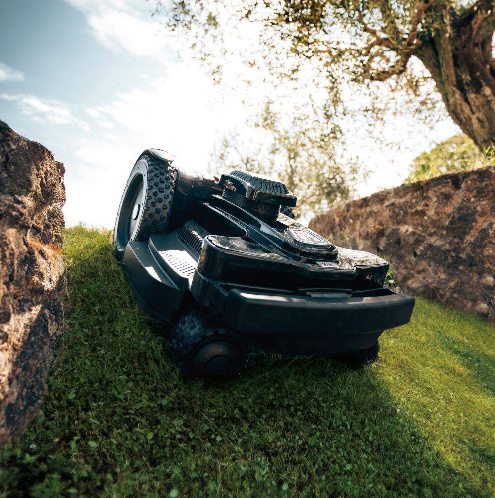 do 6000 m² • max nachylenie 65% • Bluetooth-GSM • GPS • napęd na 4 koła • drut obwodowy